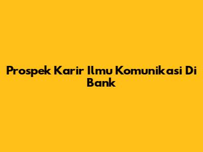 Prospek Karir Ilmu Komunikasi Di Bank