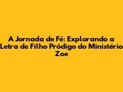 "Filho Pródigo" do Ministério Zoe é muito mais do que uma música: é um hino de esperança, um convite ao amor e ao perdão. A letra, rica em simbolismos e emoção, nos transporta para o coração da parábola, nos lembrando do amor incondicional de Deus e da alegria que há no céu por um pecador que se arrepende.