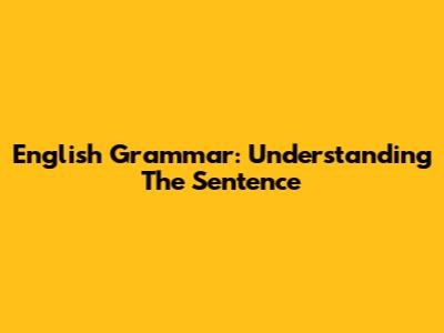 English Grammar: Understanding The Sentence