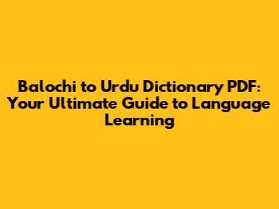 Finding the Best Balochi to Urdu Dictionary PDF: Where to Look
