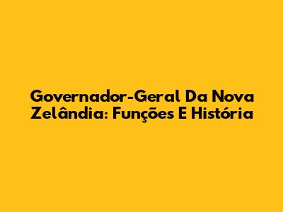 Governador-Geral Da Nova Zelândia: Funções E História