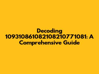 Decoding 109310861082108210771081: A Comprehensive Guide