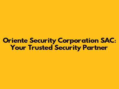 Oriente Security Corporation SAC: Your Trusted Security Partner