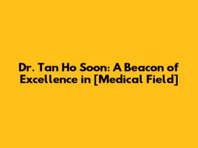 Dr. Tan Ho Soon: A Beacon of Excellence in [Medical Field]
