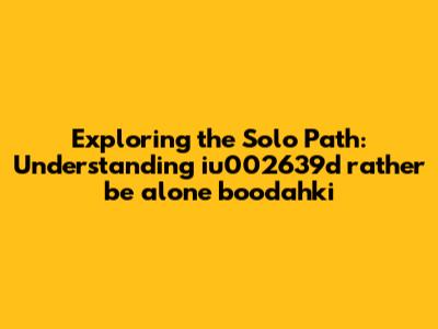 Exploring The Solo Path: Understanding 'iu002639d Rather Be Alone Boodahki'