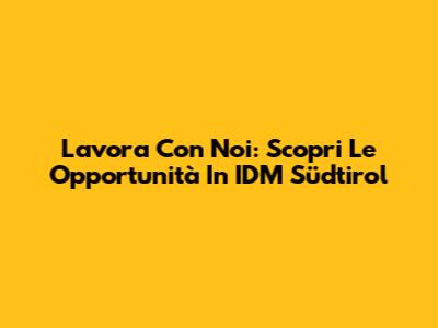 Lavora Con Noi: Scopri Le Opportunità In IDM Südtirol