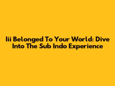 Iii Belonged To Your World: Dive Into The Sub Indo Experience