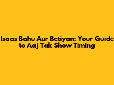 Hey everyone! Let's talk about a show that's been making waves, Isaas Bahu Aur Betiyan. If you're wondering when you can catch this intriguing series on Aaj Tak, you've come to the right place, guys. Understanding the broadcast schedule is key to not missing out on any of the drama, suspense, or heartwarming moments. Aaj Tak is known for its diverse programming, and finding the exact slot for your favorite shows can sometimes feel like a quest. This article is all about clearing up the confusion and giving you the definitive timing for Isaas Bahu Aur Betiyan on Aaj Tak. We'll dive deep into the show's premise, why it's capturing attention, and most importantly, when you can tune in. So grab a cup of chai, get comfy, and let's unravel the broadcast details together. We know how frustrating it can be to search endlessly for a show's timing, only to find conflicting information. Our goal is to provide you with a clear, concise, and accurate answer so you can plan your viewing accordingly. Whether you're a long-time fan or just curious to check out this new sensation, knowing the timing is the first step to enjoying the experience. Aaj Tak, being a prominent news and entertainment channel, often has a dynamic schedule, which can sometimes make tracking specific shows a bit tricky. But don't worry, we've got your back! We'll explore the typical programming patterns of Aaj Tak to give you the best possible insight into when Isaas Bahu Aur Betiyan is likely to air. This way, you won't have to keep constantly checking the TV guide or rely on hearsay. We want you to be able to immerse yourselves in the story without the nagging worry of missing an episode. So, stick around as we break down the Isaas Bahu Aur Betiyan timing on Aaj Tak, ensuring you’re always in the know.