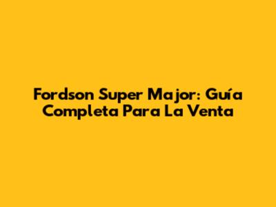 Fordson Super Major: Guía Completa Para La Venta