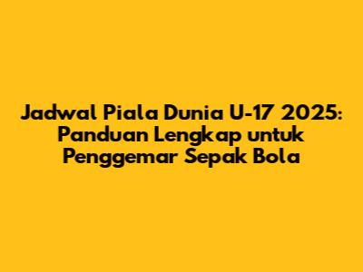 Guys, siap-siap! Kita akan membahas tuntas tentang Jadwal Piala Dunia U-17 2025. Sebagai penggemar sepak bola, pasti kamu penasaran banget kan kapan turnamen bergengsi ini akan digelar, di mana tempatnya, dan tim mana saja yang akan bertanding? Tenang, artikel ini akan memberikan semua informasi yang kamu butuhkan. Mulai dari tanggal, lokasi, format pertandingan, hingga tim-tim unggulan yang patut diwaspadai. Jadi, jangan beranjak dulu, karena kita akan menyelami dunia sepak bola U-17 yang penuh talenta muda berbakat. Mari kita mulai petualangan seru ini!
