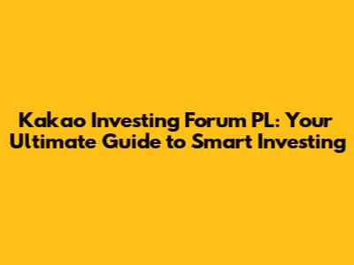 Kakao Investing Forum PL: Your Guide To Smart Investing