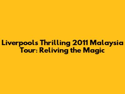 Hey there, football fanatics! Do you remember the buzz when Liverpool graced the Malaysian soil back in 2011? The air was electric, the fans were ecstatic, and the matches were unforgettable. Today, we're diving deep into the Liverpool Malaysia Tour 2011, reliving the highlights, the nail-biting moments, and the sheer joy of seeing the Reds in action. So, grab your Liverpool scarf, settle in, and let's journey back to that incredible time!