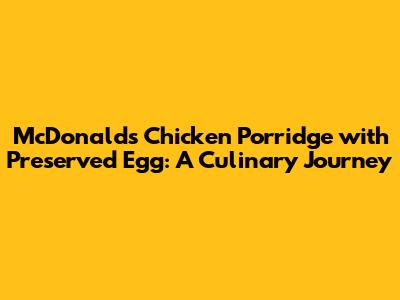 Hey foodies! Ever found yourselves craving a warm, comforting bowl of goodness? Well, let me tell you about a hidden gem at McDonald's that's seriously worth checking out: their chicken porridge with preserved egg. This dish is a delightful fusion of flavors and textures, perfect for a light meal, a quick breakfast, or a soothing treat. This article will be your ultimate guide to this McDonald's offering, exploring its ingredients, taste, and overall appeal, helping you decide if it's the next meal on your list! McDonald's has always been known for its global adaptations of its classic menu. The chicken porridge with preserved egg is a fantastic example of how they cater to local tastes, and trust me, it's a winner. This isn't your typical fast-food fare; it's a bowl of pure comfort, offering a familiar, yet unique, culinary experience. So, grab a seat, get comfy, and let's dive into the world of McDonald's chicken porridge with preserved egg! We will embark on a journey that explores every facet of this amazing dish. From the aroma wafting from the kitchen to the first spoonful, it's a sensory experience you won't want to miss. For anyone on the go, or even if you just need something fast and good, this is the perfect option. Let's start with a deeper look into the ingredients and what makes this dish so special, shall we?