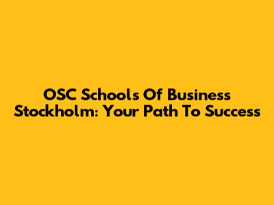 OSC Schools Of Business Stockholm: Your Path To Success