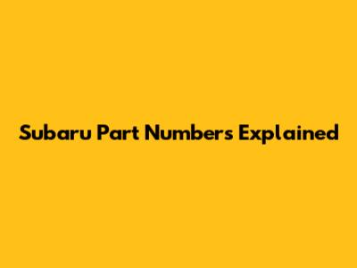 Subaru Part Numbers Explained