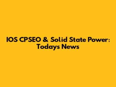 IOS CPSEO & Solid State Power: Today's News