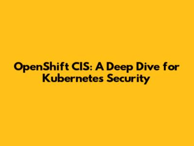 OpenShift CIS: A Deep Dive For Kubernetes Security