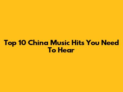 Top 10 China Music Hits You Need To Hear