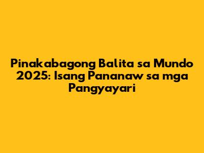 Ang pag-alam sa pinakabagong balita sa mundo ay mahalaga upang tayo ay maging informed at handa sa mga pagbabago na nagaganap sa ating paligid. Ang pag-unawa sa mga isyu tulad ng climate change, ekonomiya, politika, at teknolohiya ay makakatulong sa atin na gumawa ng matalinong desisyon sa ating buhay. Manatiling updated sa mga balita, gamit ang mga mapagkakatiwalaang media outlets, iba't ibang wika, at pakikilahok sa mga talakayan. Sa pagpasok natin sa 2025, maging bukas sa pagbabago, matuto ng mga bagong kasanayan, at patuloy na maging bahagi ng pag-unlad ng mundo.