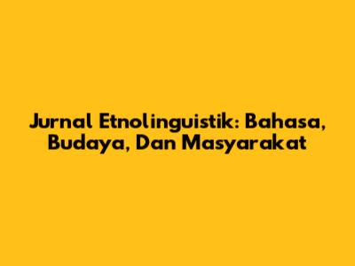 Jurnal Etnolinguistik: Bahasa, Budaya, Dan Masyarakat