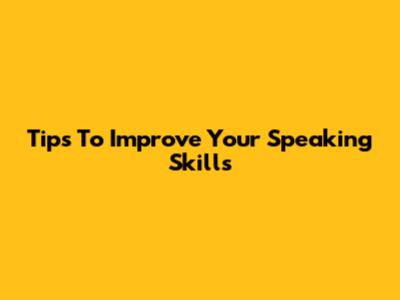 Tips To Improve Your Speaking Skills
