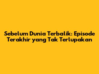 Kesimpulan: Warisan yang ditinggalkan oleh Sebelum Dunia Terbalik sangat besar. Serial ini telah memberikan hiburan, inspirasi, dan persahabatan bagi jutaan penonton. Episode terakhir akan menjadi momen perpisahan yang mengharukan, tetapi juga menjadi pengingat akan semua kenangan indah yang telah kita lalui bersama.