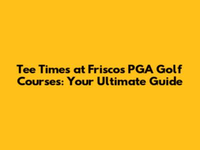 Tee Times At Frisco's PGA Golf Courses: Your Ultimate Guide