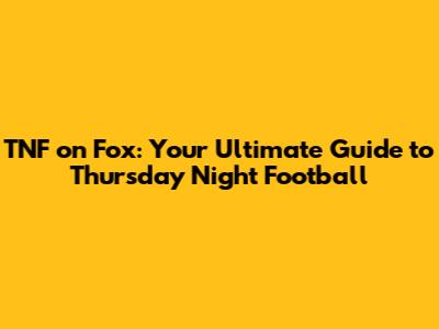 Hey sports fanatics! Are you ready for some Thursday Night Football action on Fox Sports? This comprehensive guide will break down everything you need to know about Thursday Night Football (TNF) on Fox, from game schedules and broadcast details to where you can stream the games. Get ready to dive deep into the world of TNF and make sure you don't miss a single touchdown. Let's get started, shall we?