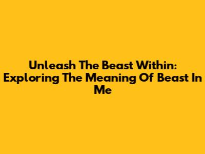 Unleash The Beast Within: Exploring The Meaning Of "Beast In Me"