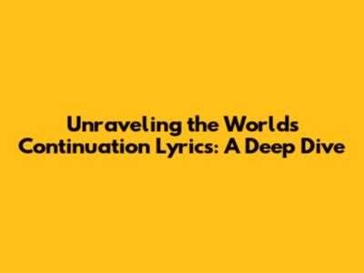 Hey music lovers! Ever gotten completely lost in the intricate world of a song's lyrics? You know, that feeling of being completely immersed in the story, the emotions, the raw beauty of the words? Well, today, we're going to dive headfirst into the lyrics of "World's Continuation." This isn't just about reading words; it's about understanding the heart and soul of the song. We'll break down the verses, explore the hidden meanings, and try to figure out what the artist was trying to tell us. So, grab your headphones, crank up the volume, and let's get started. We're going to explore the depth of the song's lyrics and how they resonate with us.