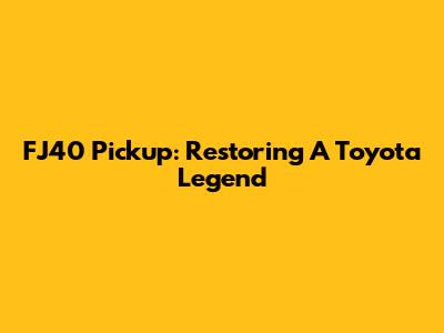 FJ40 Pickup: Restoring A Toyota Legend