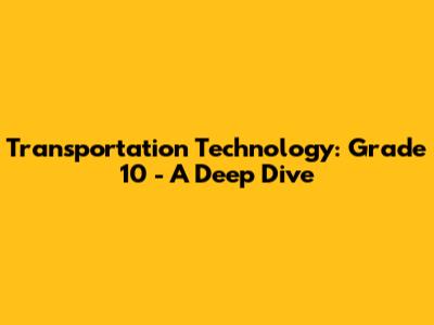 Transportation Technology: Grade 10 - A Deep Dive