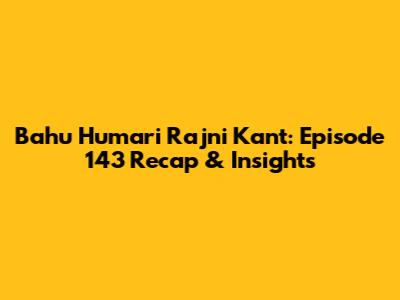 Bahu Humari Rajni Kant: Episode 143 Recap & Insights